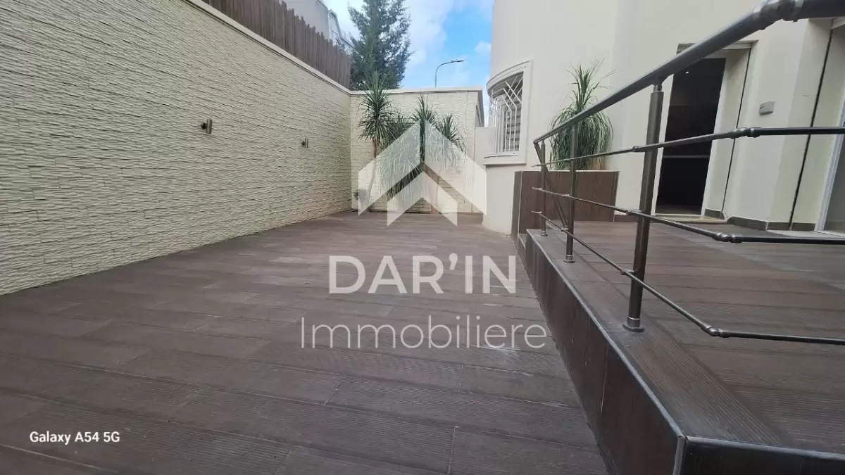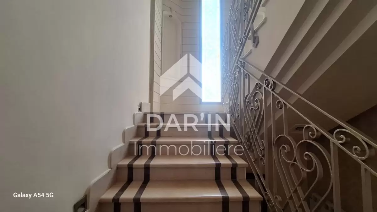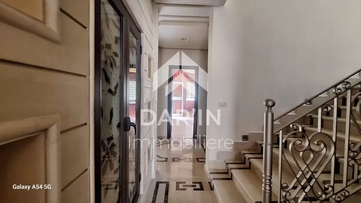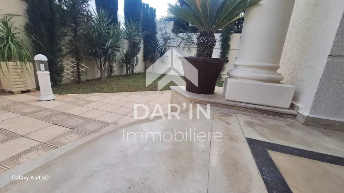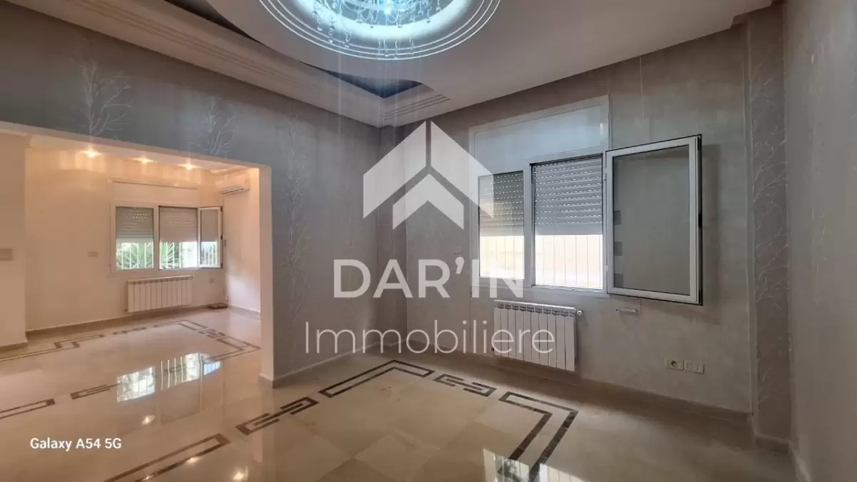 Une villa indépendante S+4 avec jardin et garage composé comme suit Au rez de chaussée Salon lumineux Salle à manger Salle de séjour Une cuisine équipée ouverte sur la terrasse Une salle d’eau À l’étage Suite parental avec sa propre dressing et salle de bain avec jacuzzi 03chambres à coucher avec dressing dont deux avec balcon Une salle de bain avec baignoire Climatiseurs dans toutes les chambres Chauffage central Terrasse Jardin Garage