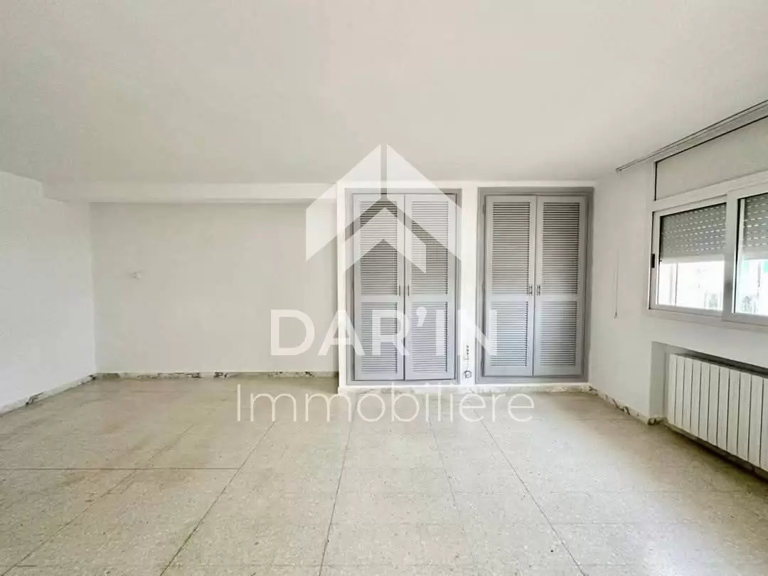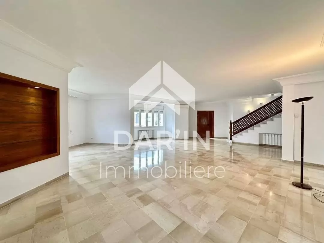 Dar'In immobilière vous propose à la location un duplex indépendant S+4 avec garage situé à la marsa cité des juges composé comme suit :un grand salon ,un séjour cuisine équipé ,3chambres à coucher avec dressing , une salle de bain avec baignoire, ,salle d'eau avec douche ,terrasse ,garage