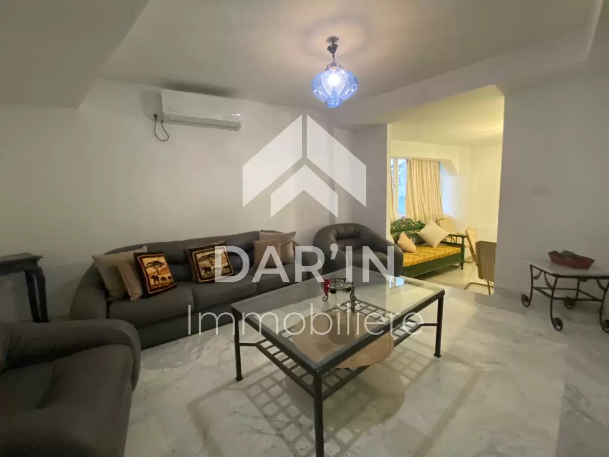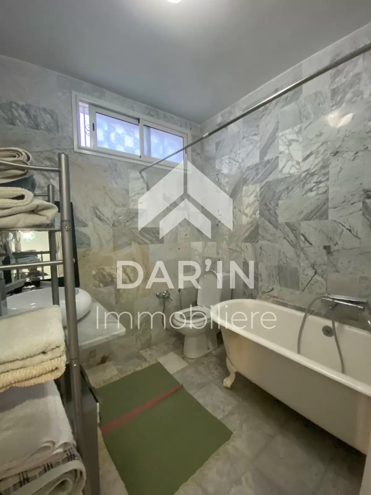 Un étage de villa S+2 meublé avec piscine à la Marsa. Deux salons spacieux. Une cuisine équipée et aménagée par des éléments de rangements. Elle est complétée par un coin repas. Deux chambres à coucher avec placard. Elles partagent une salle de bain commune. Un terrasse spacieux avec une piscine. Chauffage central et climatisation sont fonctionnels.
