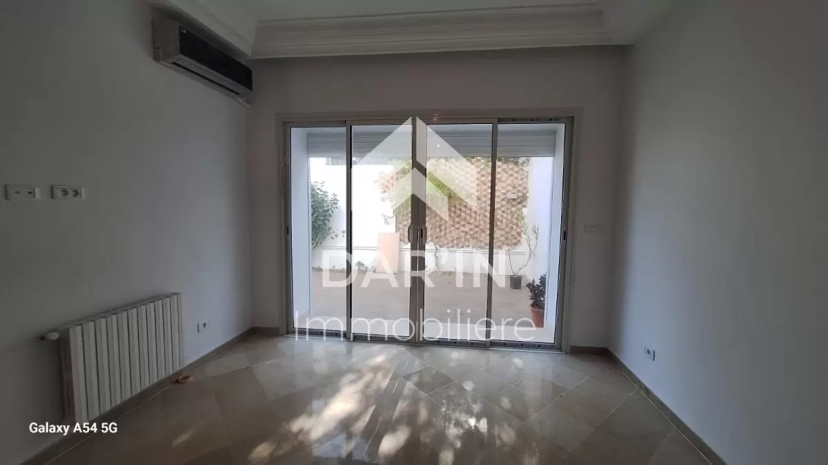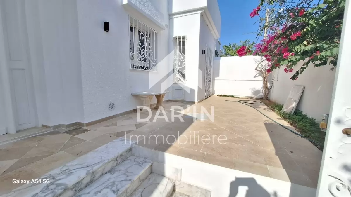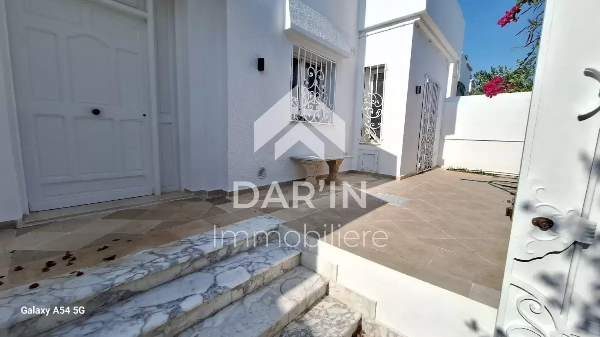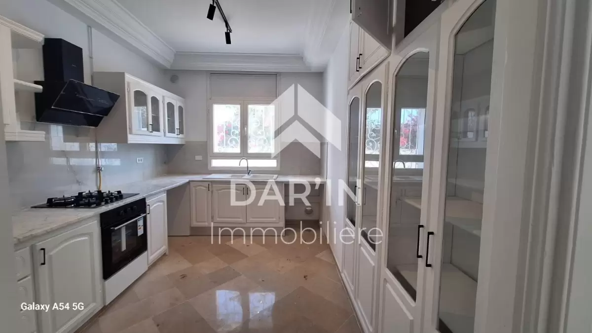 RDC de villa indépendante S+3 composé comme suit Suite parentale avec sa propre salle d’eau avec douche Deux chambres à coucher dont une avec terrasse Salon spacieux grâce à sont ouverture sur le terrasse Cuisine équipée Salle de bain avec baignoire Place de parking pour deux voitures
