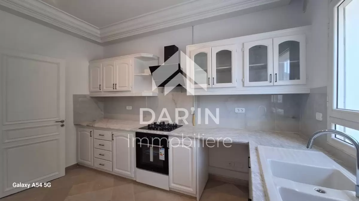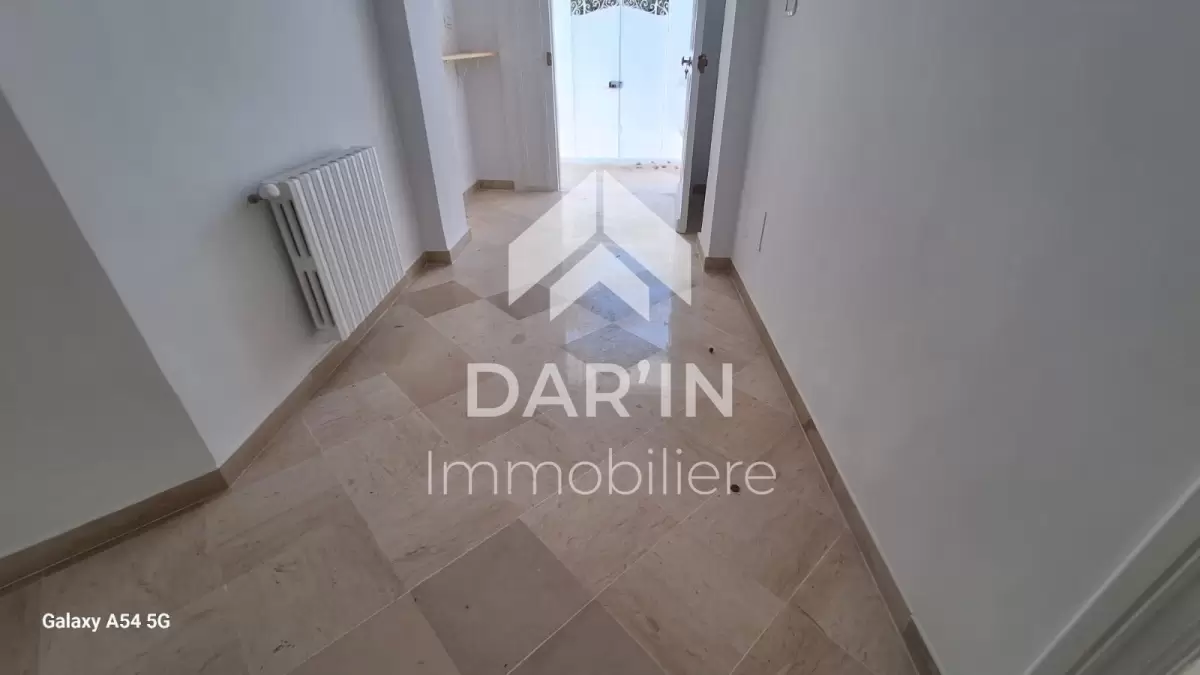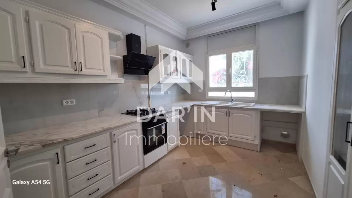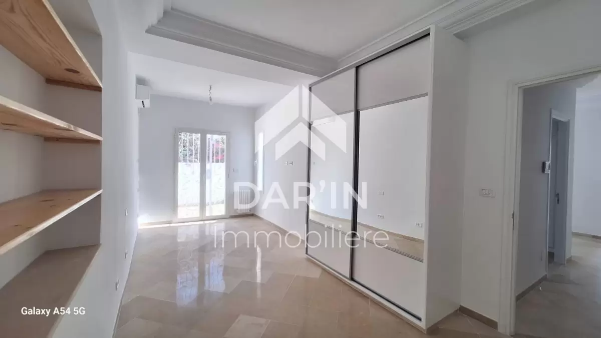 RDC de villa indépendante S+3 composé comme suit Suite parentale avec sa propre salle d’eau avec douche Deux chambres à coucher dont une avec terrasse Salon spacieux grâce à sont ouverture sur le terrasse Cuisine équipée Salle de bain avec baignoire Place de parking pour deux voitures