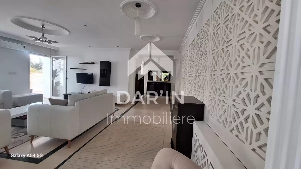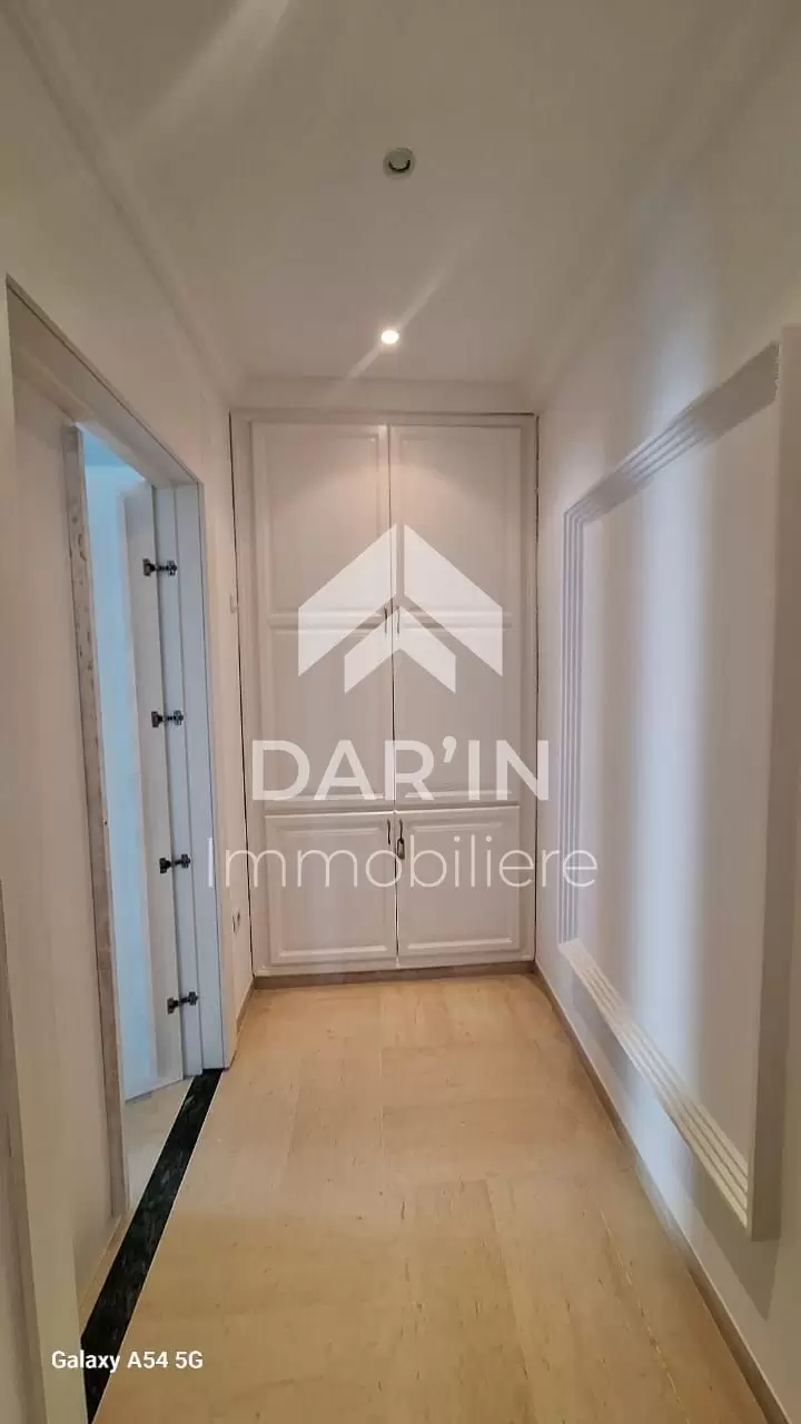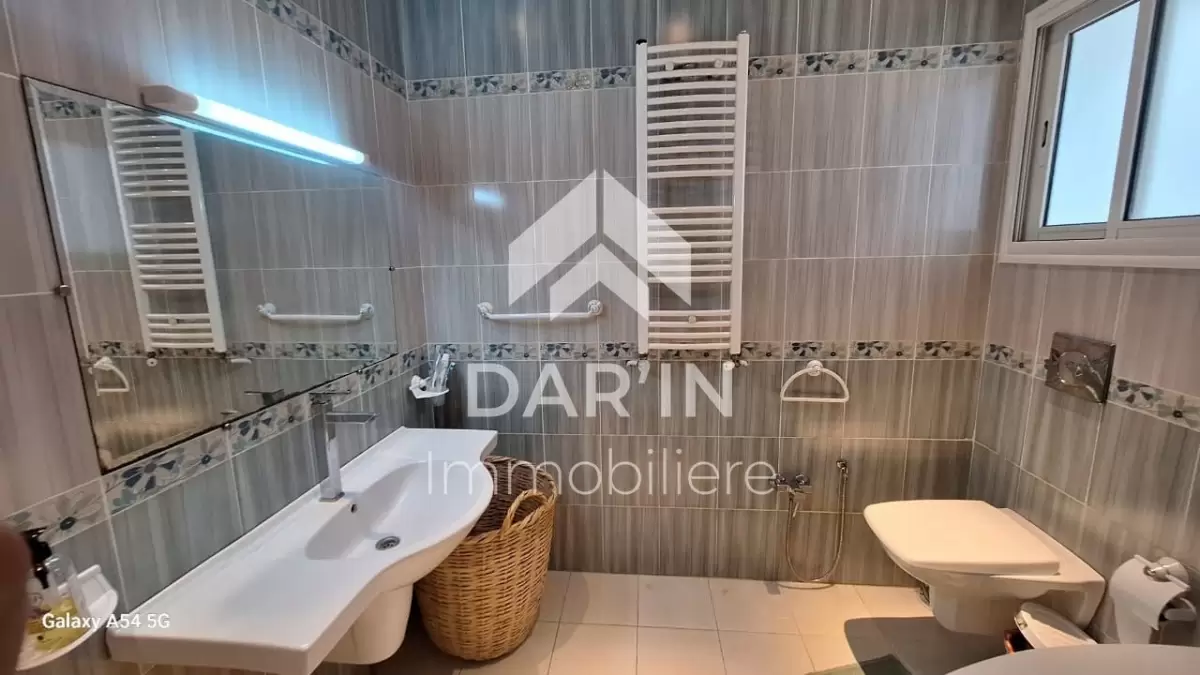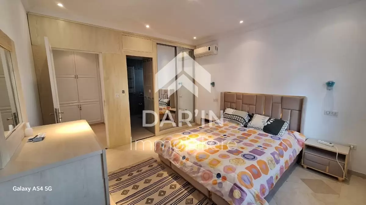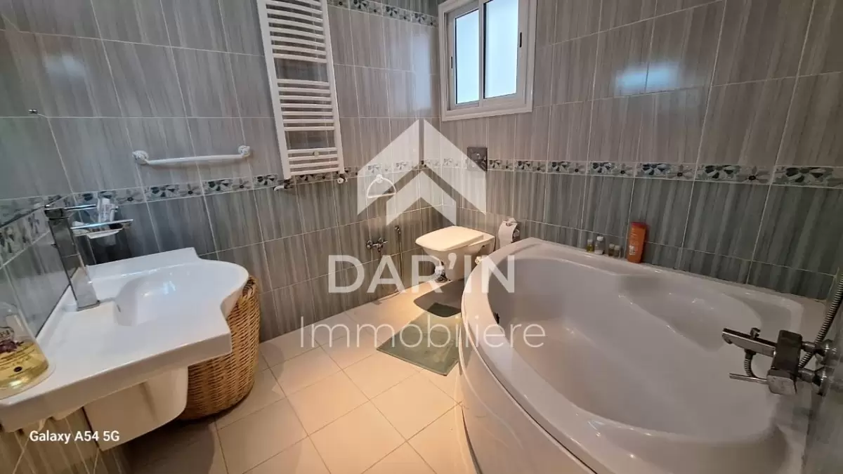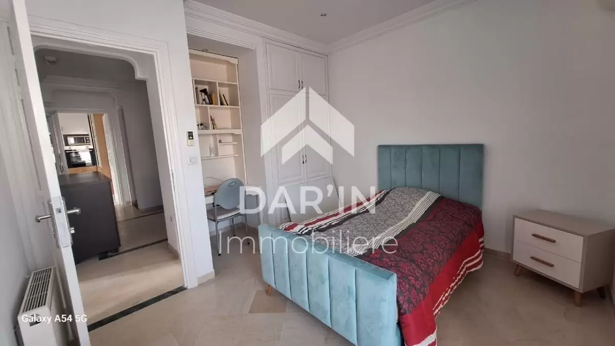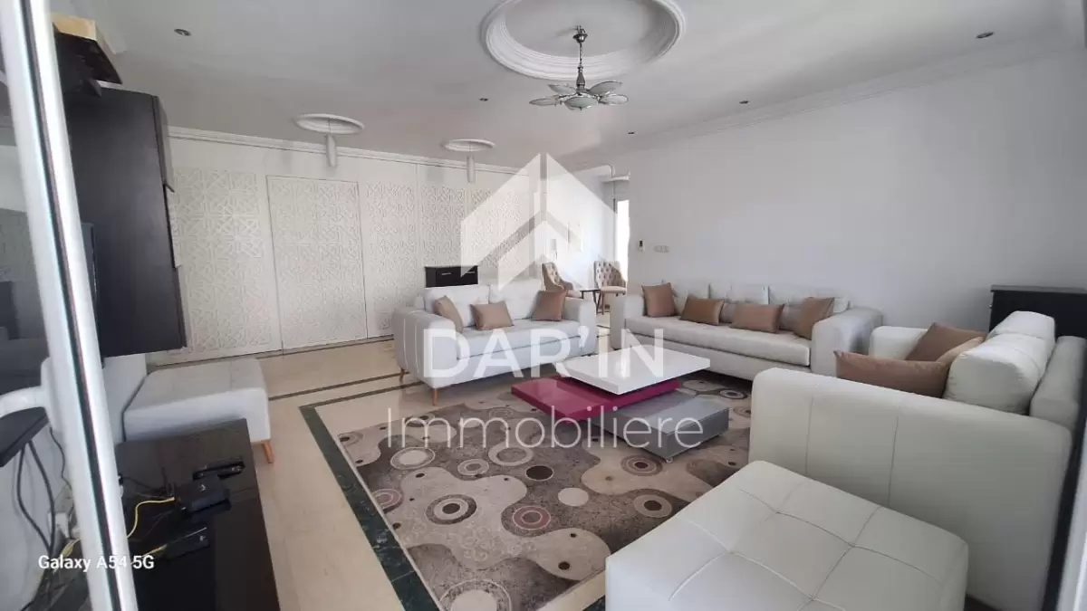 Appartement meublé S+4 composé comme suit: salon spacieux avec un grand balcon/suite parentale avec sa propre dressing et salle de bain avec baignoire trois chambres à coucher dont deux avec balcon cuisine bien équipé un grand terrasse